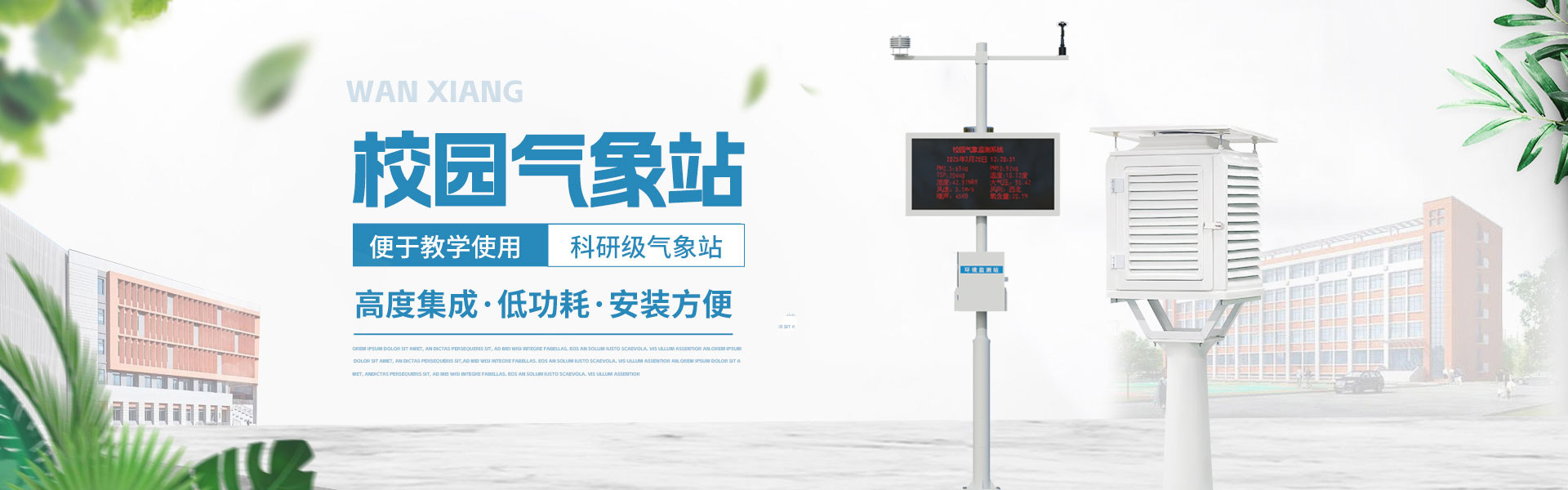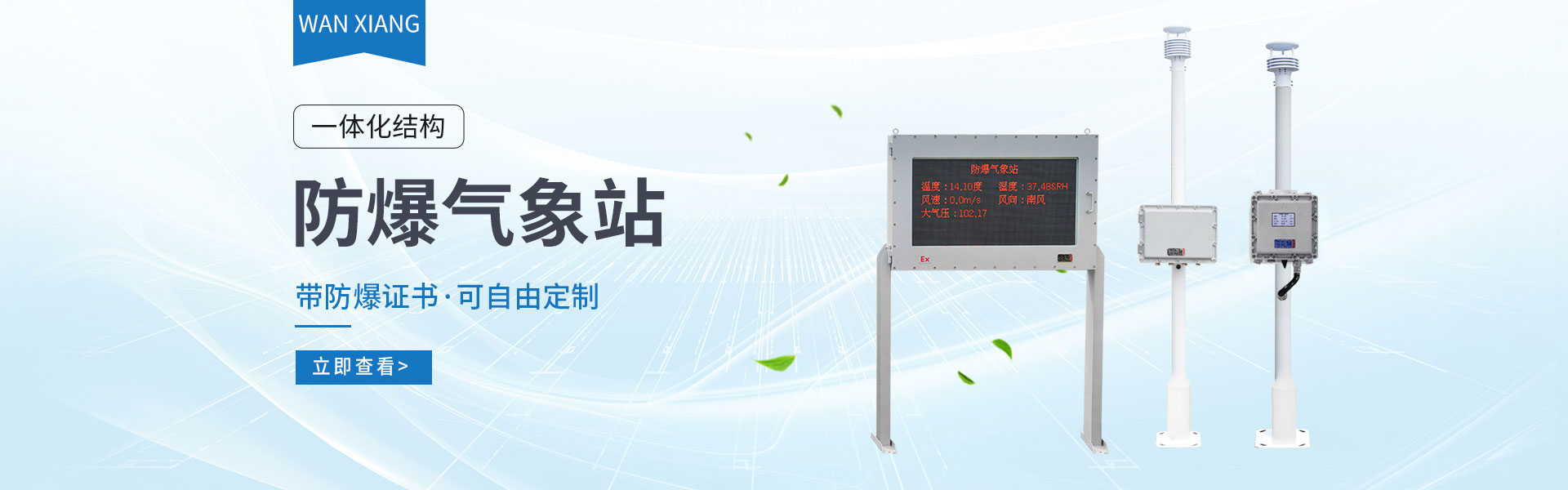 山東萬象環境科技有限公司官網主要產品有防爆氣象站,校園氣象站,農業氣象站,負氧離子監測站,超聲波氣象站,歡迎咨詢15666889815!